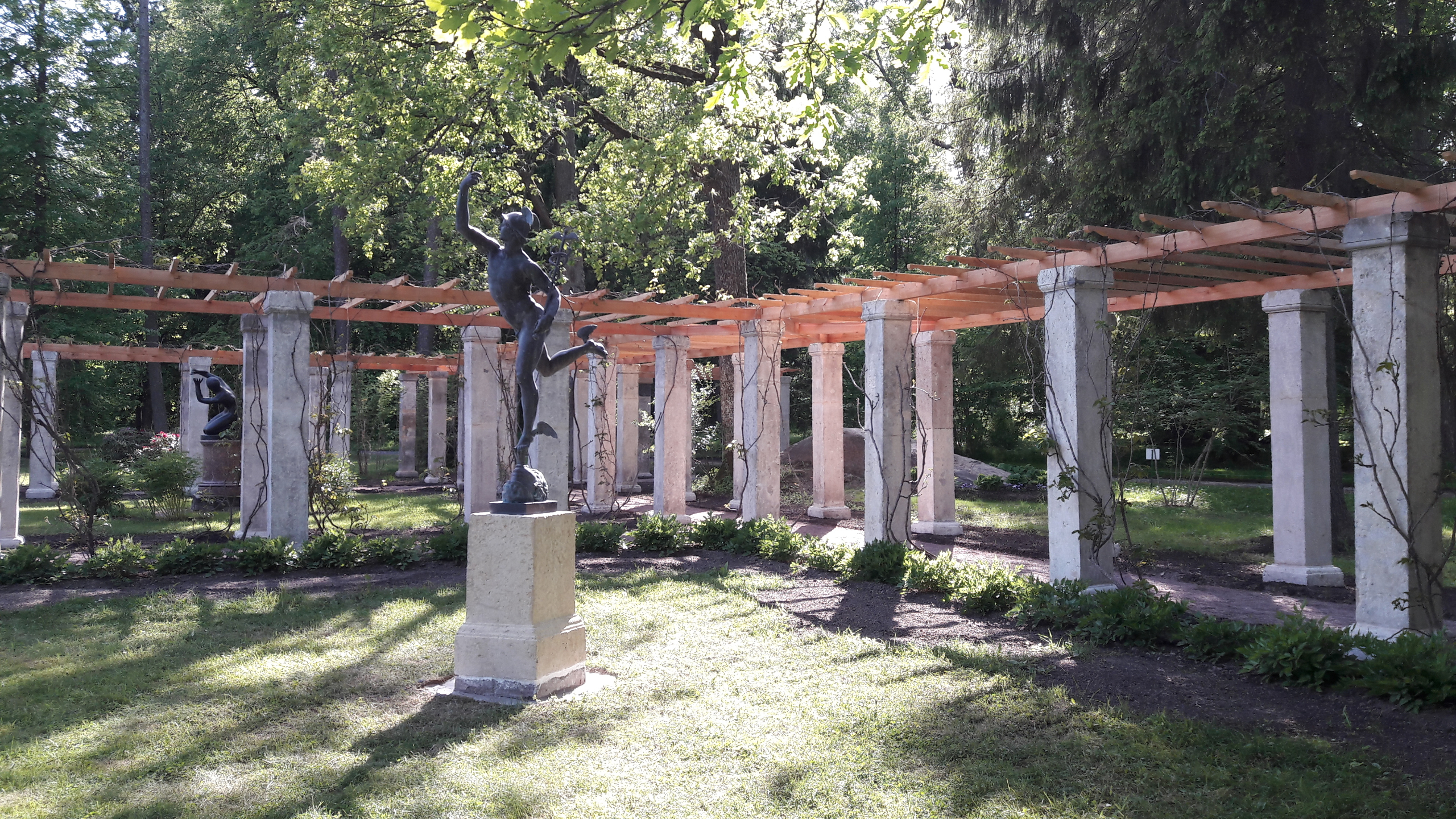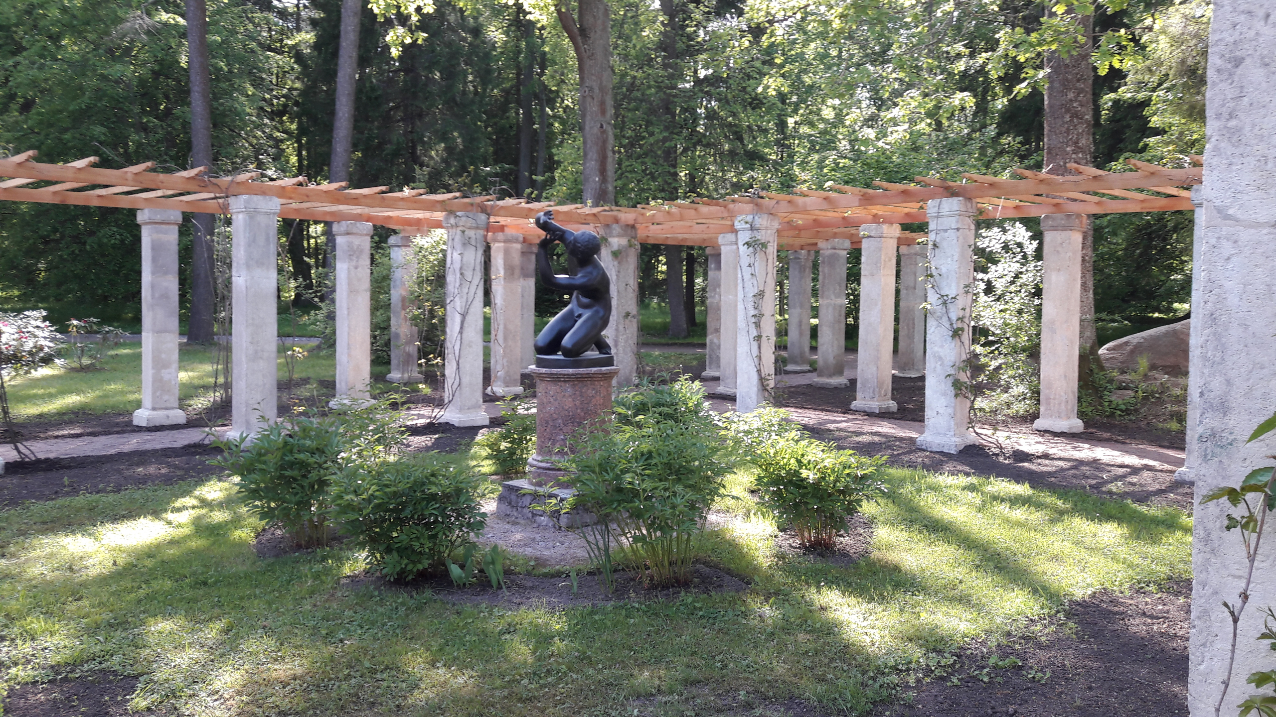 Живописная пергола, жаль, ещё не обвита зеленью.