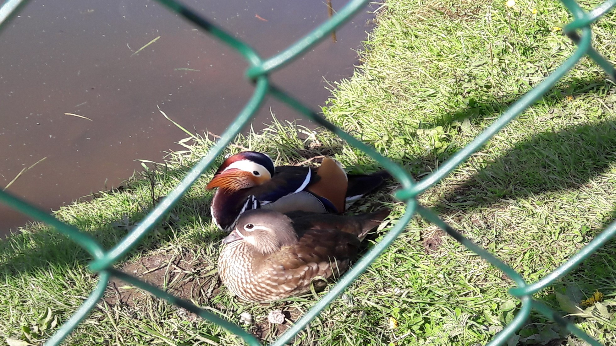 Обитатели зверинца: утка-мандаринка и канадская казарка (но это не точно, насчёт второй птицы могу заблуждаться).